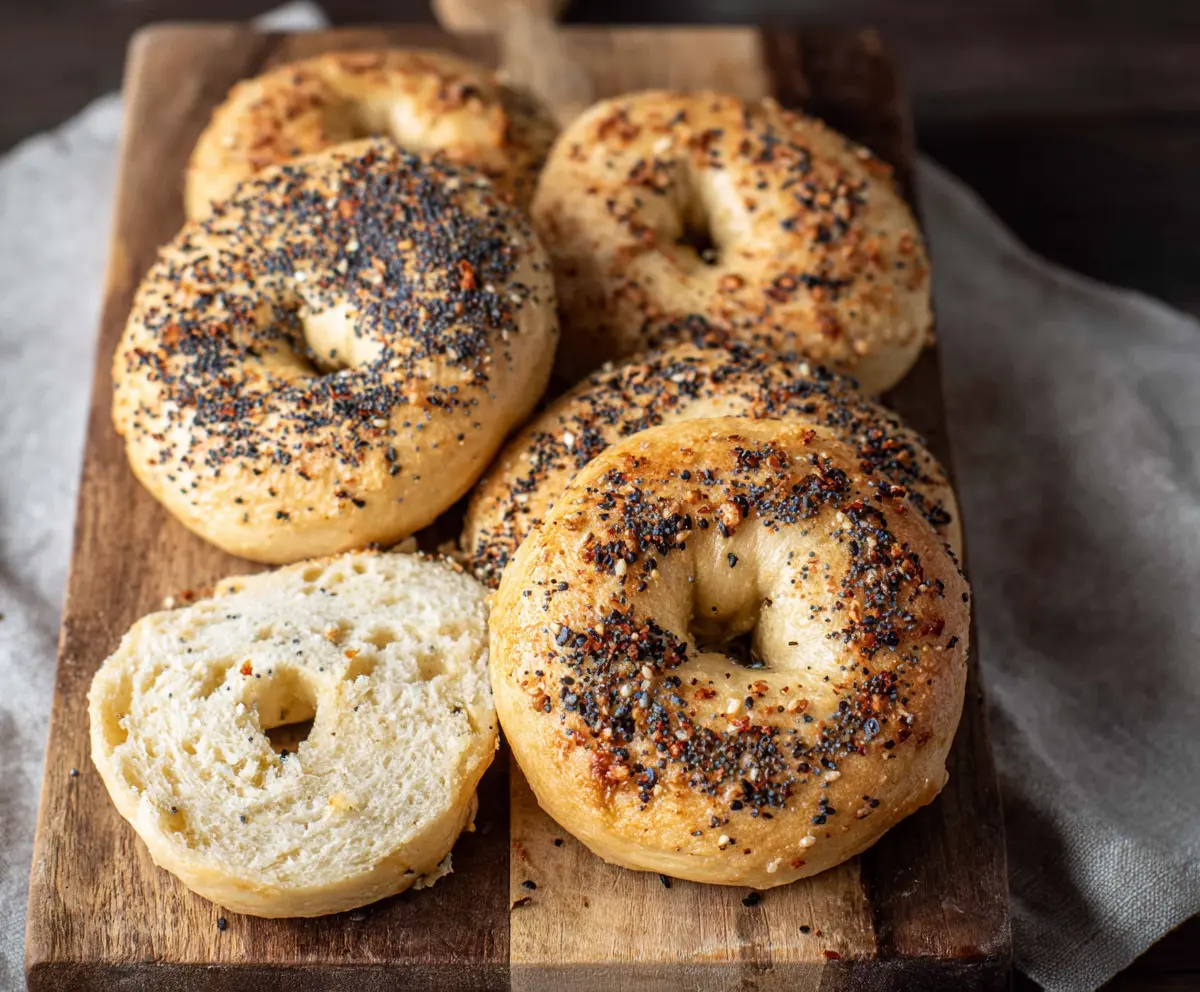 You can customize your bagels with various toppings! Everything bagel seasoning is a classic choice, but you might also enjoy sesame seeds, poppy seeds, or even a touch of cinnamon sugar for a sweeter option.