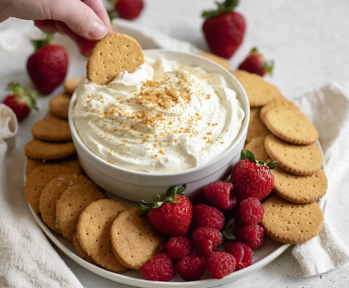 Get ready to dive in! Serve this delightful cheesecake dip with fresh strawberries, vanilla wafer cookies, or graham crackers for dipping. It’s a simple and tasty treat that everyone will love!
