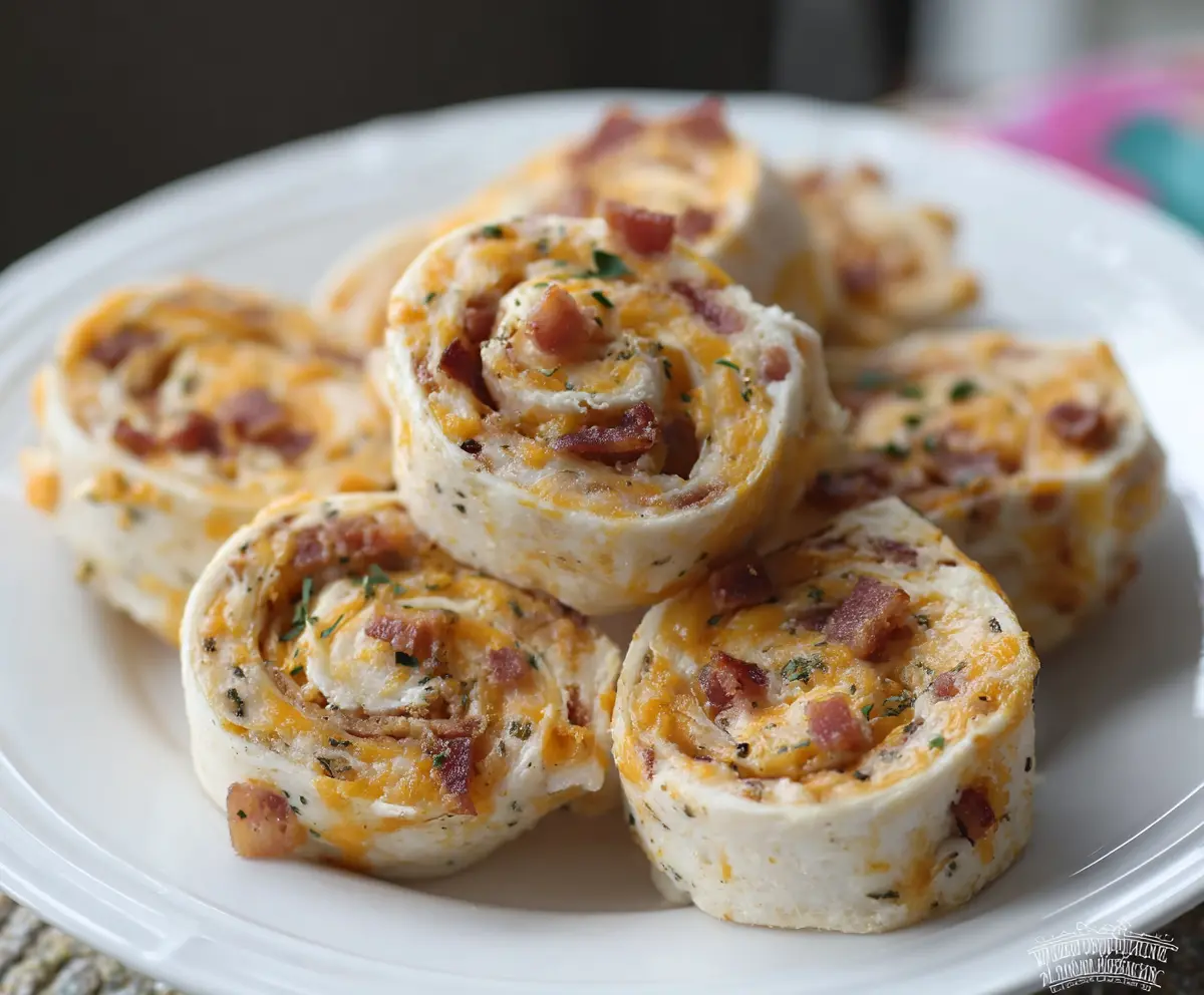 Bacon Cheddar Ranch Pinwheels are fun and tasty roll-ups filled with creamy ranch, crispy bacon, and sharp cheddar cheese. They’re perfect for parties or snack time!