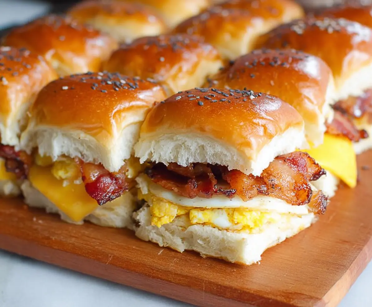 These Bacon Egg and Cheese Breakfast Sliders are the perfect way to start your day! Soft rolls are filled with crispy bacon, fluffy eggs, and creamy cheese, making each bite a warm delight.
