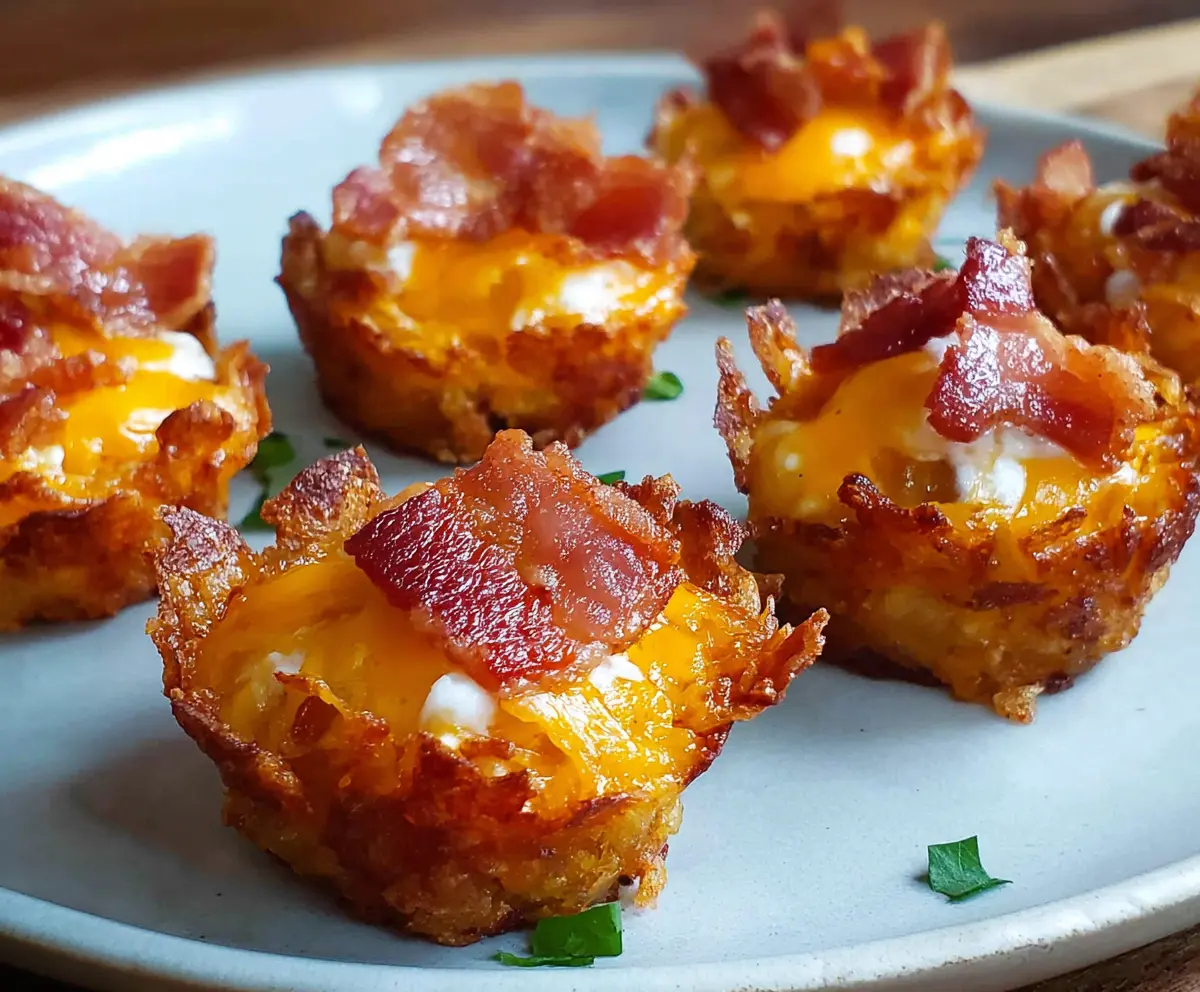 These Bacon Tater Tot Cups are little bundles of joy! Crispy tater tots form a tasty cup, filled with gooey cheese and smoky bacon. Perfect for snacks or parties!