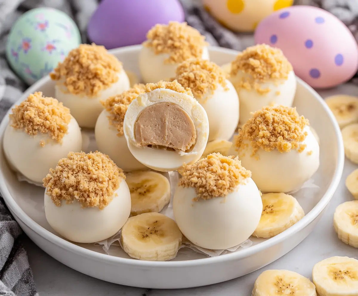 These truffles perfectly capture the creamy, sweet, and nostalgic flavors of banana pudding in a fun, bite-sized treat for Easter celebrations!