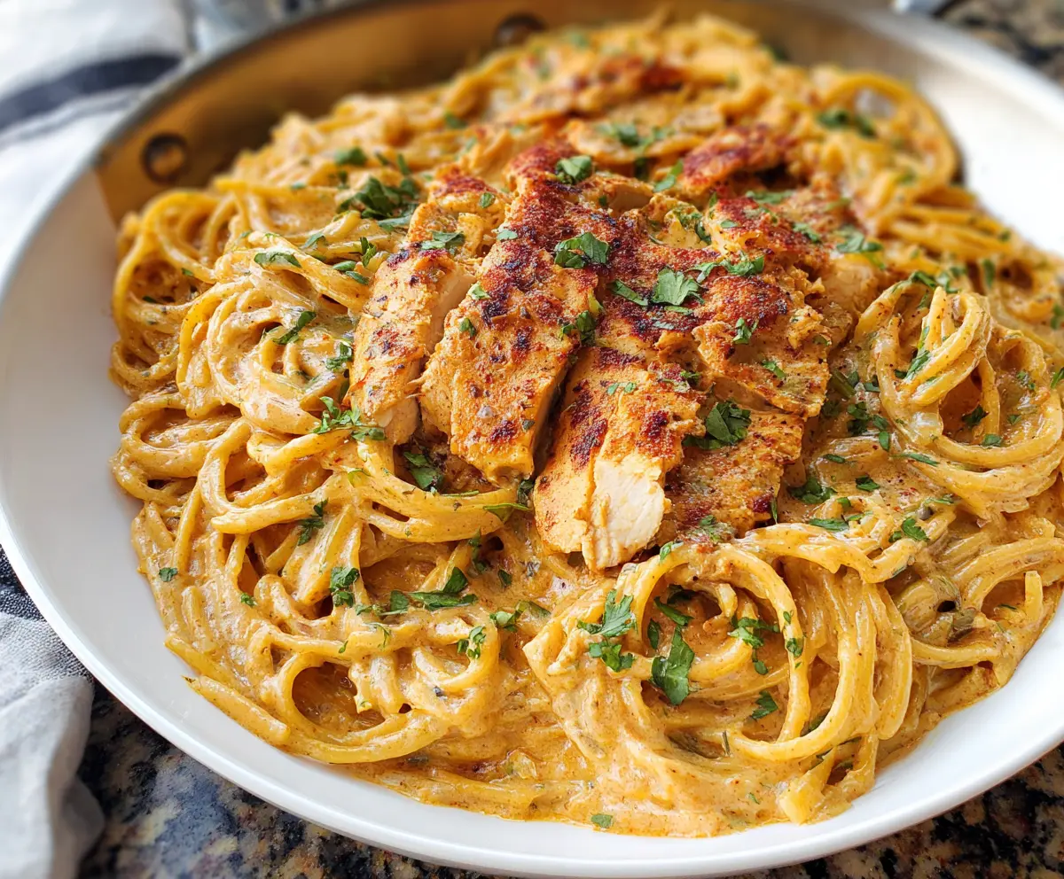 Garnish with freshly chopped parsley before serving. Enjoy your creamy, spicy, and flavorful Bold and Cajun Chicken Spaghetti hot!