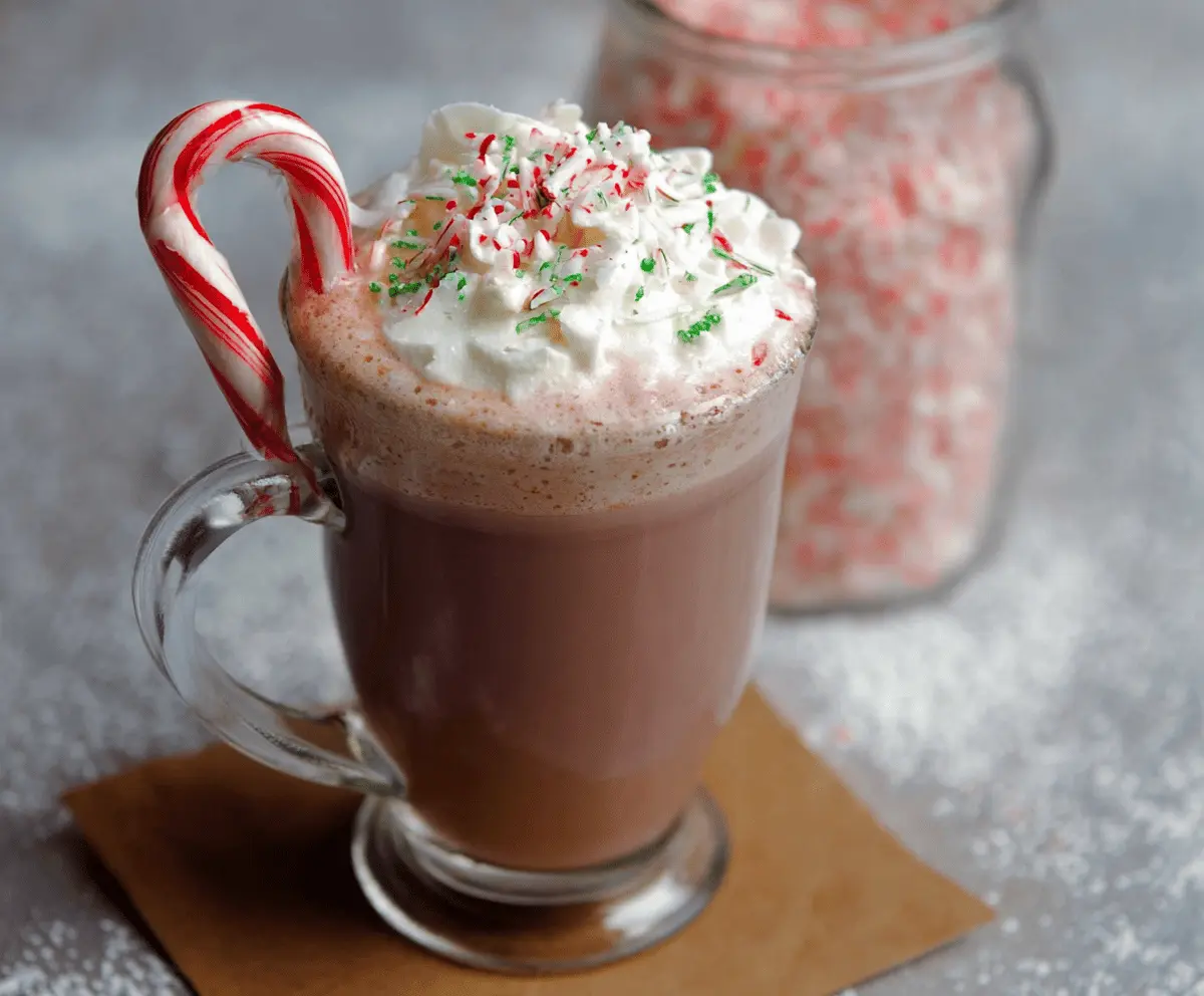 Sprinkle the crushed candy cane pieces over the whipped cream for that festive touch. Finally, hang a whole candy cane on the rim of the mug as a fun garnish!