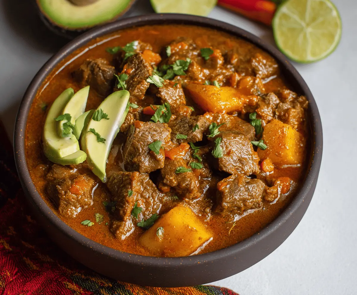 Serve the carne guisada hot, garnished with fresh chopped cilantro and lime wedges on the side. This stew pairs perfectly with warm tortillas or a side of steamed white rice, making for a complete and satisfying meal.