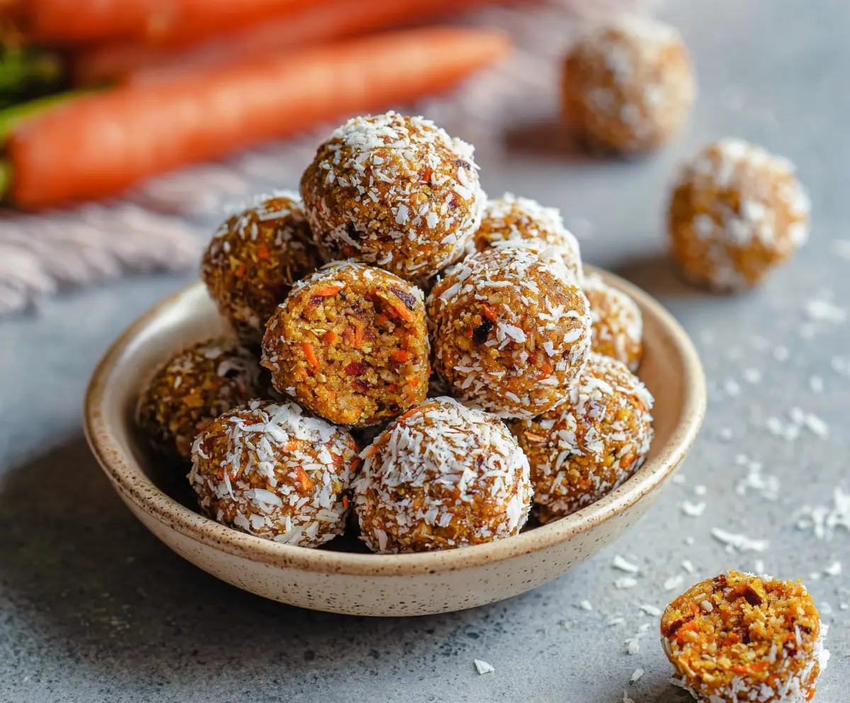 These Carrot Cake Energy Bites are a tasty and healthy snack! Made with oats, shredded carrots, and a hint of cinnamon, they are like little bites of carrot cake goodness!