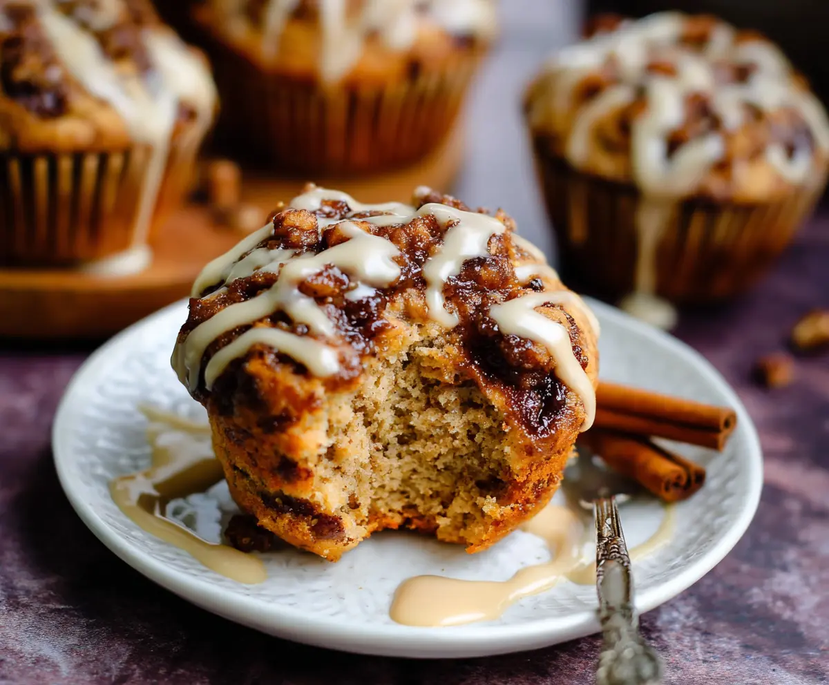 When the muffins are warm, drizzle the glaze over them. This adds a sweet finishing touch. Enjoy them warm or let them cool to room temperature!