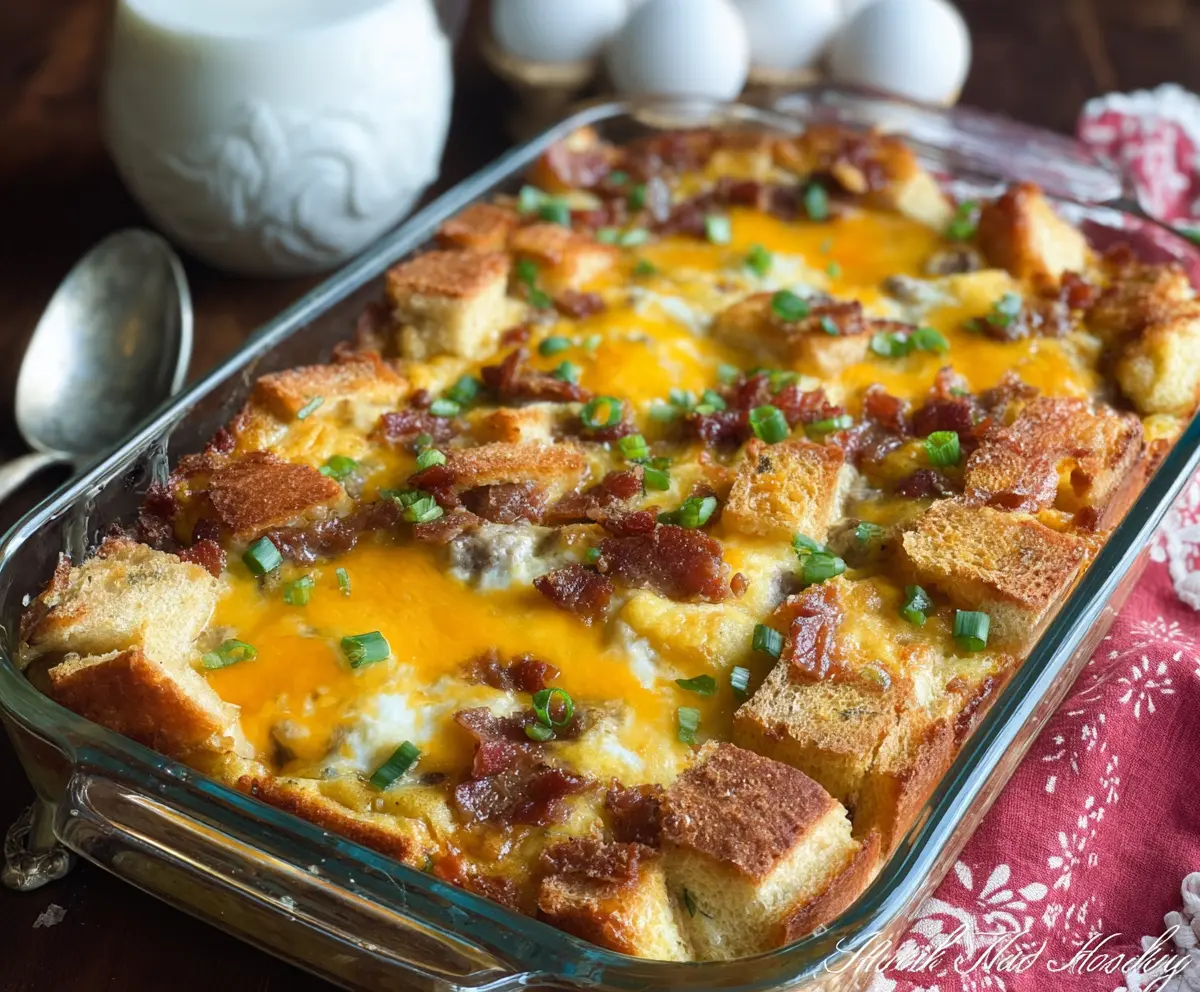 This Country Breakfast Casserole is a fantastic blend of savory sausage, creamy cheese, and comforting bread—all baked to perfection!