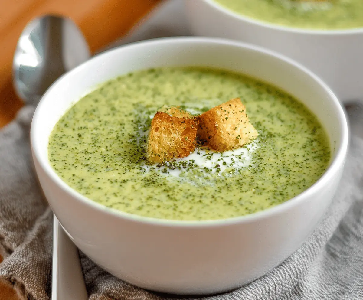 Serve the soup hot, garnished with croutons for a delightful crunch. Enjoy your cozy, creamy broccoli soup!
