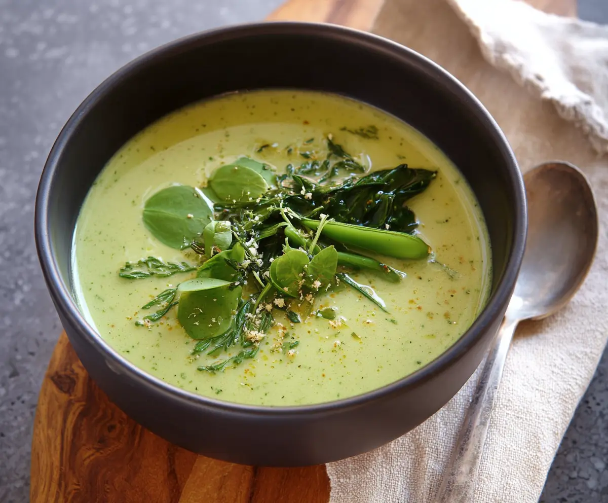 Making this soup is a breeze! Just cook the greens, blend them up, and add a splash of cream. I love serving it with crusty bread for a perfect meal. It warms my heart every time! 💚