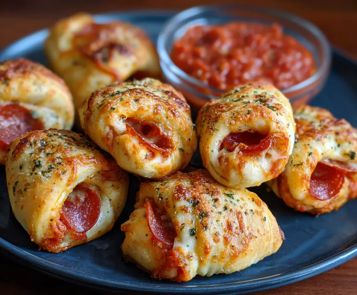 Crescent pizza rolls are like little pockets of joy. Made with flaky crescent dough, they are stuffed with gooey cheese and your favorite pizza toppings. Yum!