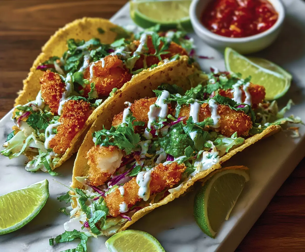 These crispy coconut shrimp tacos are a fun and tasty treat! Each bite is packed with juicy shrimp, crispy coconut, and fresh toppings all wrapped in a soft tortilla.