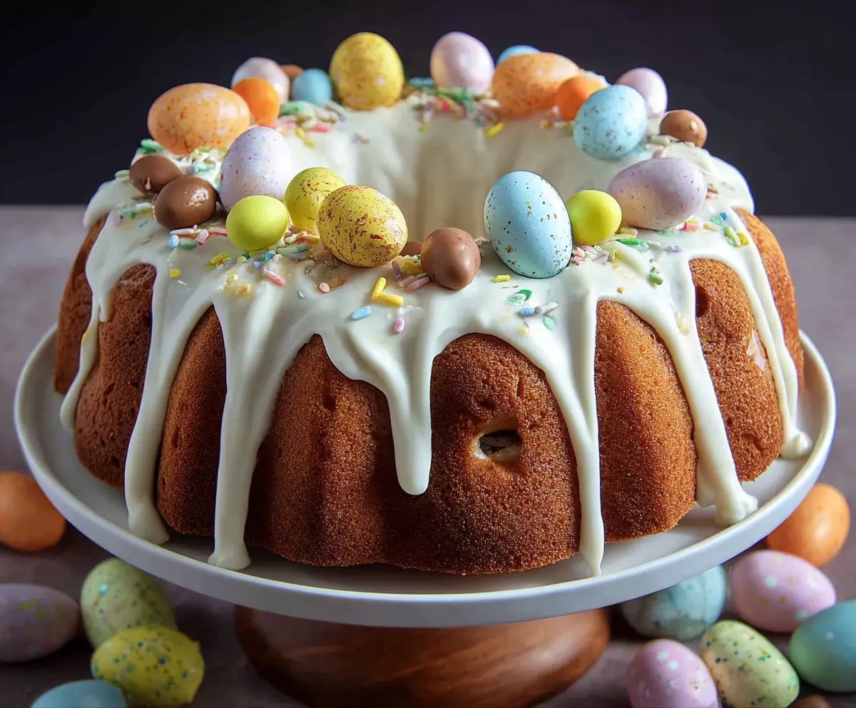 This Easter Bundt Cake is a festive treat packed with colorful sprinkles and a soft, moist texture. Topped with a sweet glaze, it’s perfect for celebrating the holiday!