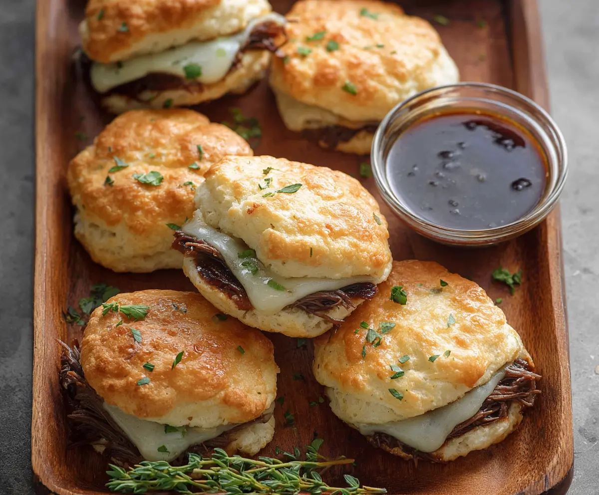 French Dip Biscuits are a delightful twist on the classic sandwich. They feature tender biscuits filled with savory beef and melted cheese, perfect for dipping in rich broth!
