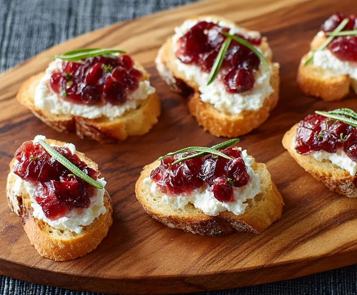 Carefully arrange your crostini on a serving platter. Serve them immediately while they’re warm and crispy. Enjoy this elegant appetizer that combines the creamy, tangy goat cheese with the sweet-tart cranberries and fragrant rosemary!