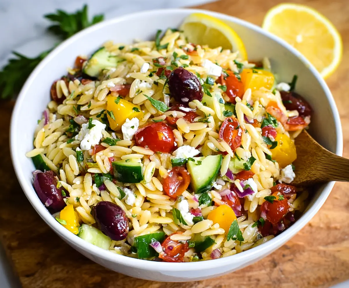Enjoy your fresh and vibrant Greek Orzo Salad!