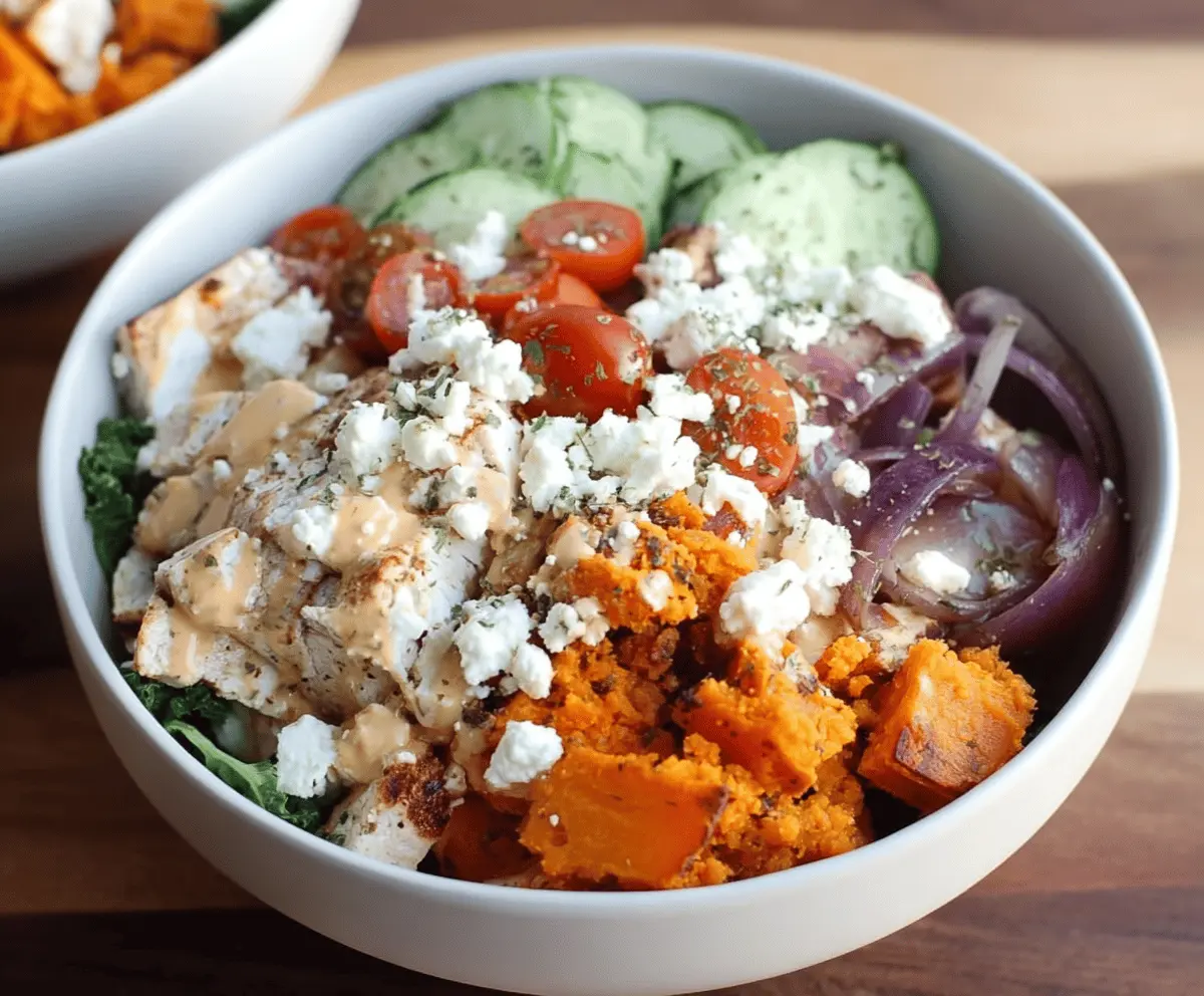 These Greek Sweet Potato Bowls are a tasty mix of creamy sweet potatoes, fresh veggies, and yummy feta cheese. They’re colorful and full of flavor, making them perfect for any meal!