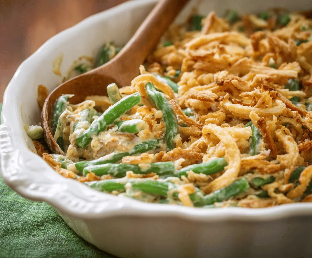 This classic dish perfectly combines creamy mushroom sauce, tender green beans, and crispy fried onions, making it a hit at any gathering! Enjoy every bite!