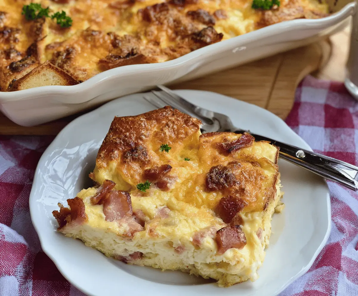 Allow the casserole to cool for a few minutes before slicing it into squares. Serve warm and enjoy it with fresh orange juice or coffee for a wonderful breakfast experience!