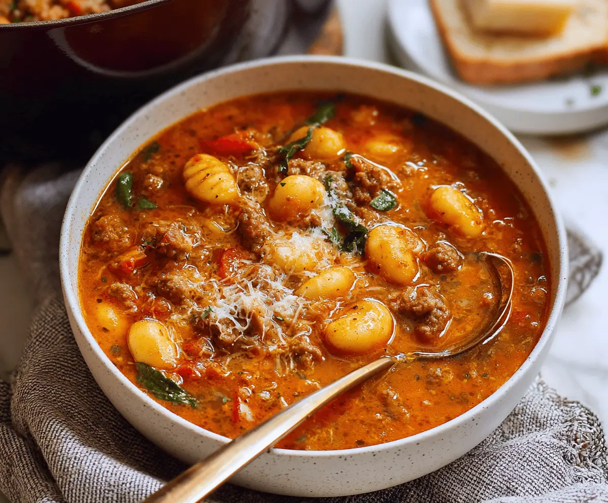 This cozy soup is packed with fluffy gnocchi, juicy sausage, and fresh veggies. It’s like a warm hug in a bowl—perfect for chilly days!