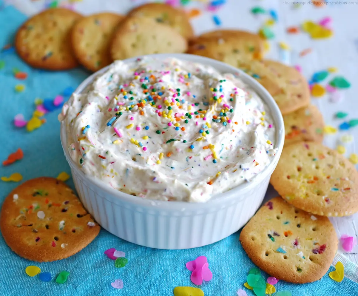 I love serving it with cookies for dipping—it’s like a party in a bowl! Plus, it’s super easy to whip up, making it my go-to dish for surprise guests. Who doesn’t love sprinkles? 🎉