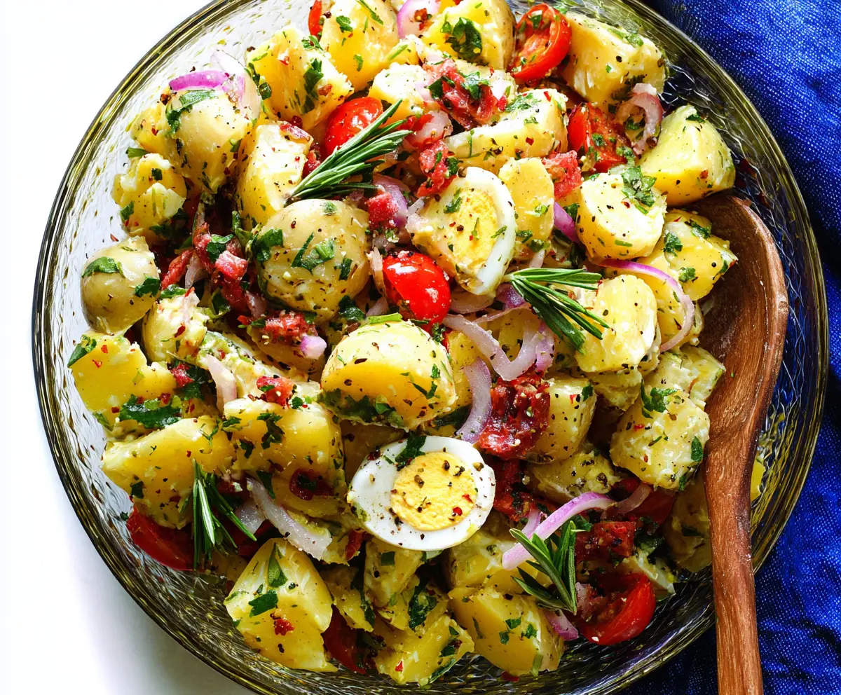 Traditional Italian Easter Potato Salad with fresh herbs and colorful vegetables