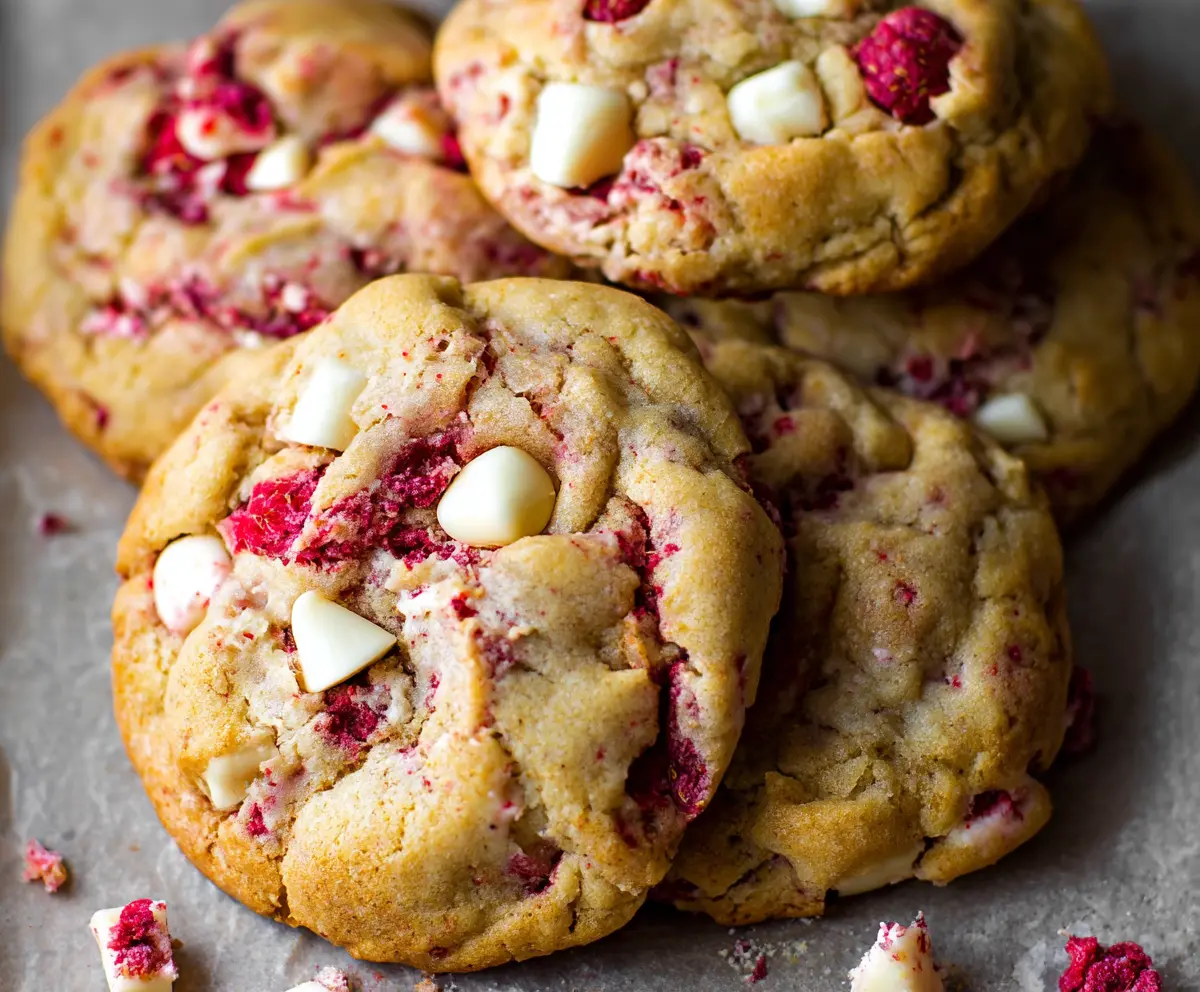 This recipe yields delightful, soft, and chewy cookies ample in raspberry and white chocolate flavor—perfect for sharing or indulging yourself!