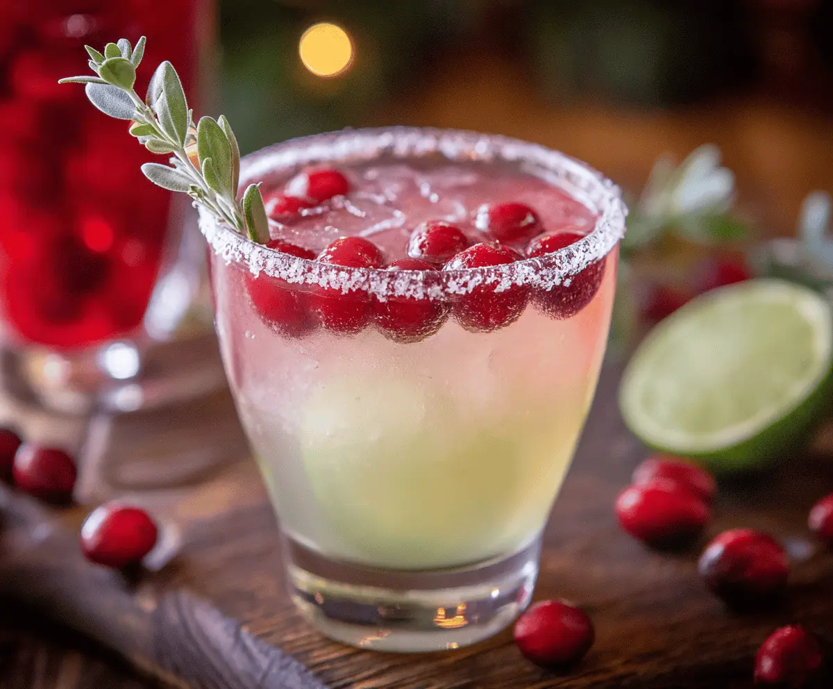 This colorful Mistletoe Margarita is perfect for holiday celebrations, combining tart citrus notes with the festive touch of cranberry and the aromatic hint of rosemary. Enjoy every sip!