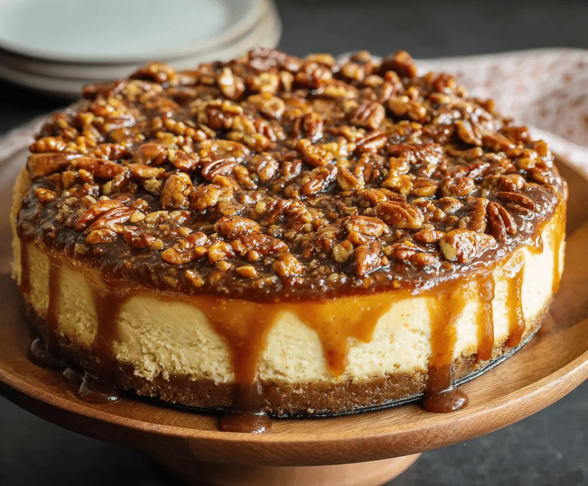 This creamy dessert is a perfect treat for any occasion, combining all the best flavors of pecan pie and cheesecake. Enjoy! 🍰