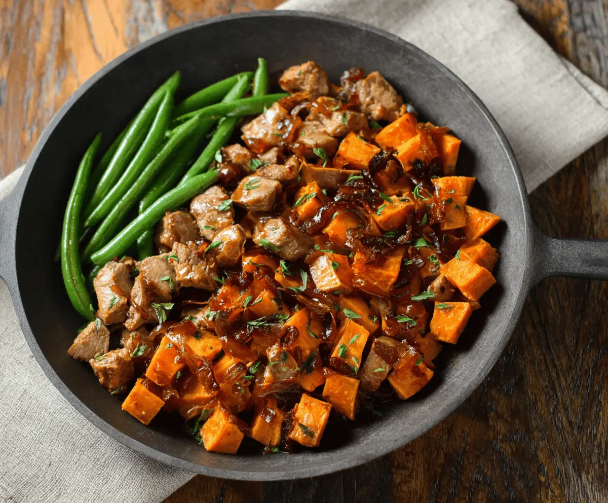 This Pork and Sweet Potato Skillet is a tasty and hearty dish that’s easy to whip up on a busy night. The juicy pork pairs perfectly with the sweet, soft potatoes, creating a delightful balance!