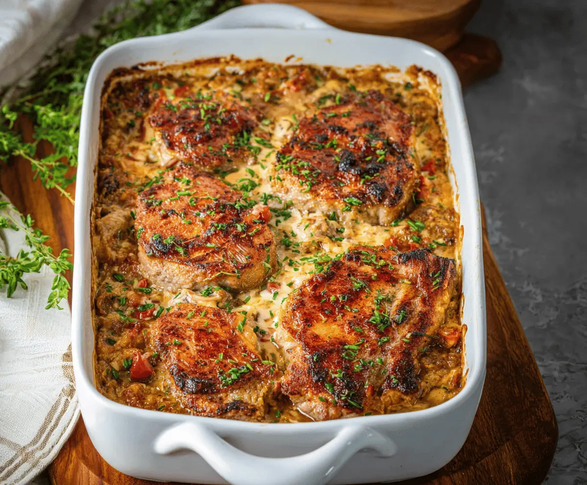 This Pork Chop Casserole is a hearty dish that combines juicy pork chops with creamy soup and delicious vegetables. It’s comforting and sure to please the whole family!