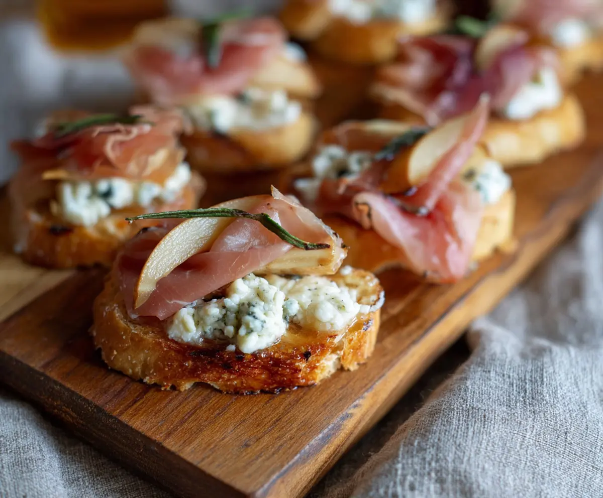 How to Make Prosciutto Pear Gorgonzola Crostini