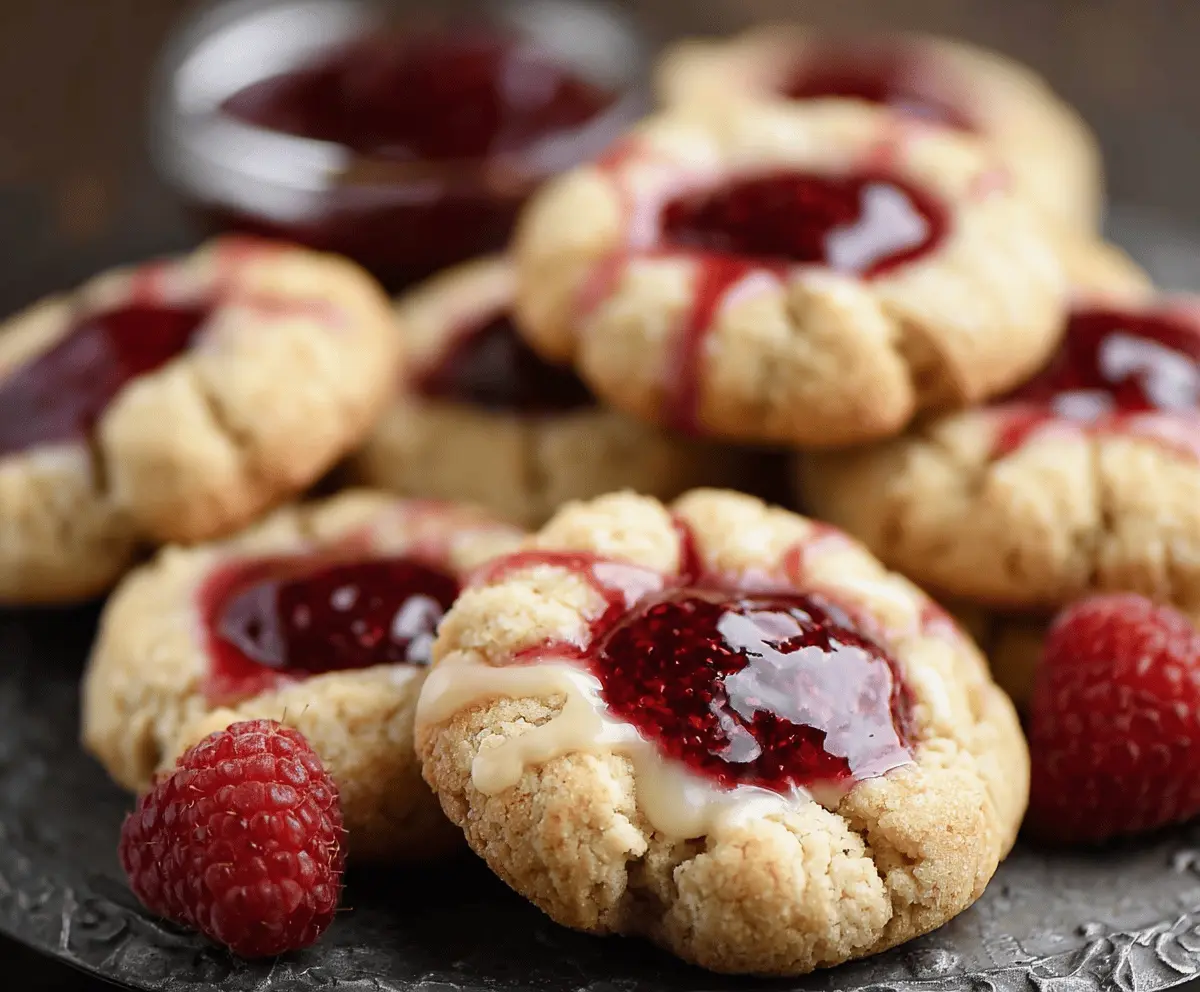 If you like, garnish with fresh raspberries right before serving for a pop of color and a fresh touch. Enjoy your delightful and tasty Raspberry Cheesecake Thumbprint Cookies!