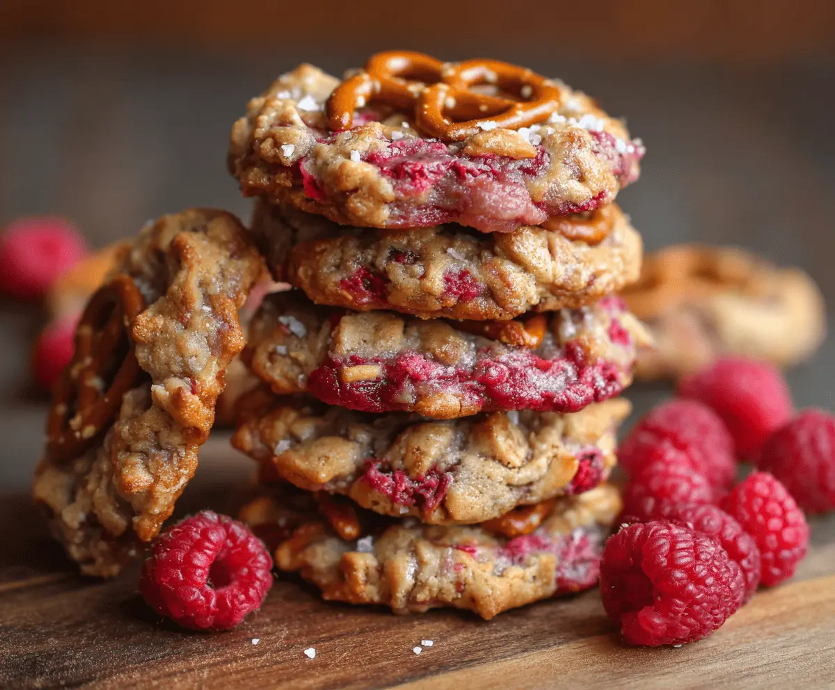 Your Raspberry Pretzel Cookies are now ready to serve! Enjoy the delightful combination of crunchy pretzels, sweet raspberries, and buttery cookie goodness!