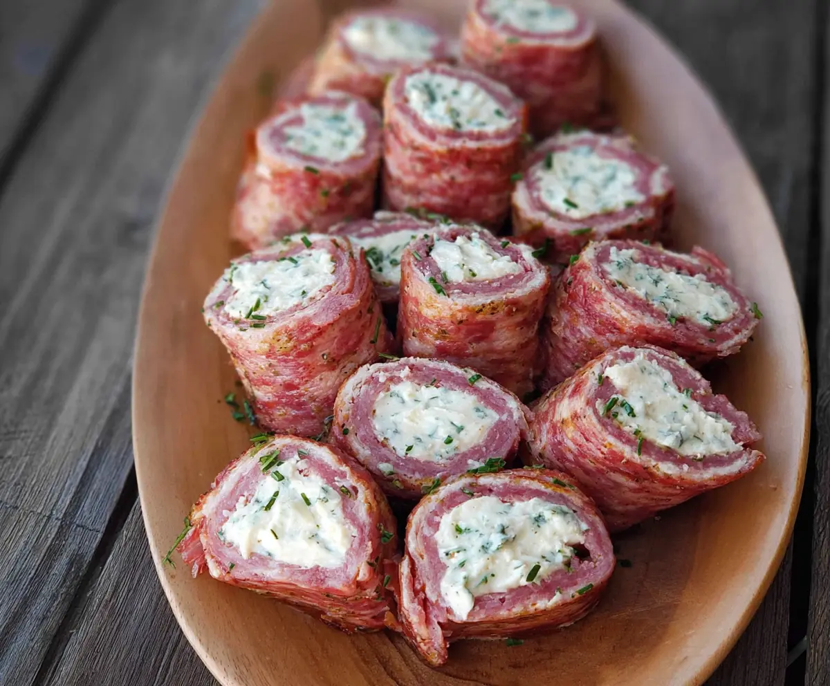 These Salami & Cream Cheese Roll Ups are super easy to make and packed with flavor! Just roll some savory salami around creamy cheese for a tasty snack.