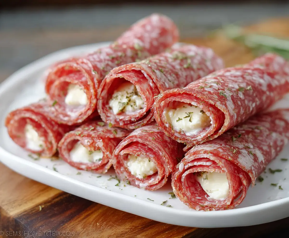 These elegant and savory salami roll ups are perfect for a quick bite or a gathering. Enjoy every bite!