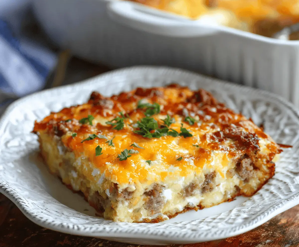 How to Make Sausage Egg Cream Cheese Hashbrown Breakfast Casserole