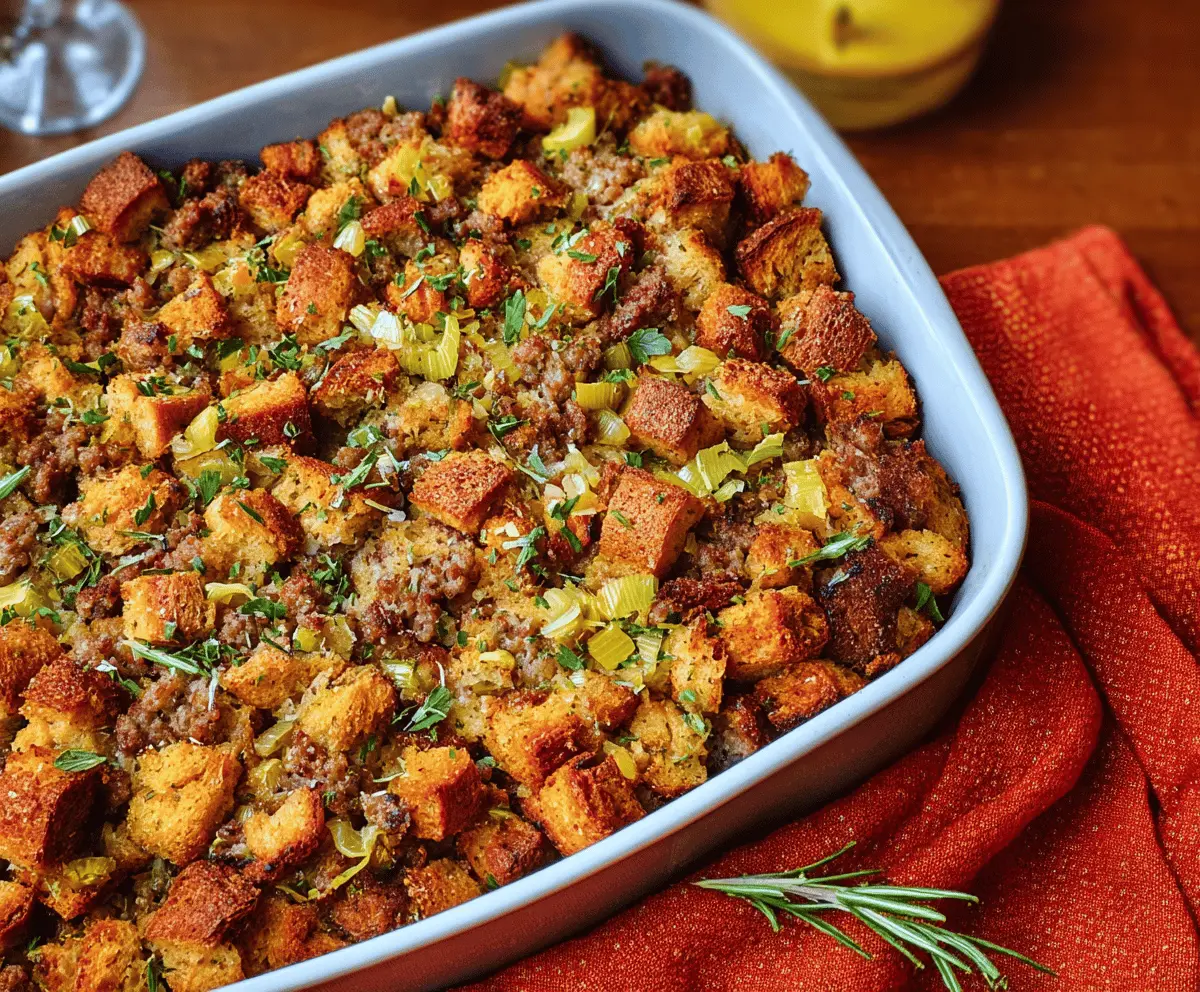 This sausage stuffing is sure to be a crowd-pleaser—perfect for holidays or a cozy family dinner. Enjoy every delicious bite!