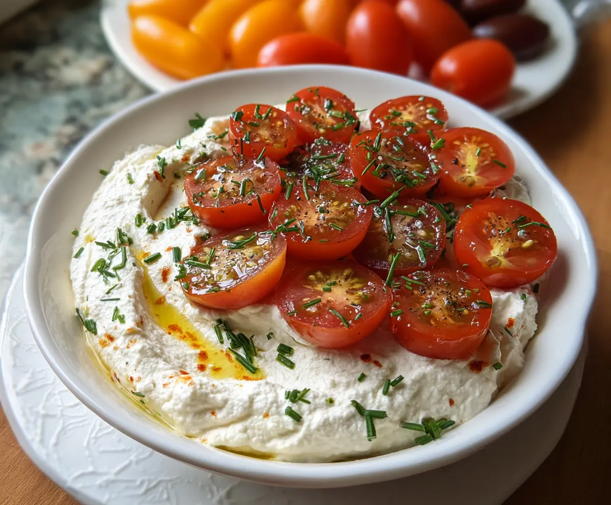 This dish features creamy whipped cottage cheese paired with juicy, fresh tomatoes. It’s a quick and tasty way to enjoy a healthy snack or light meal!