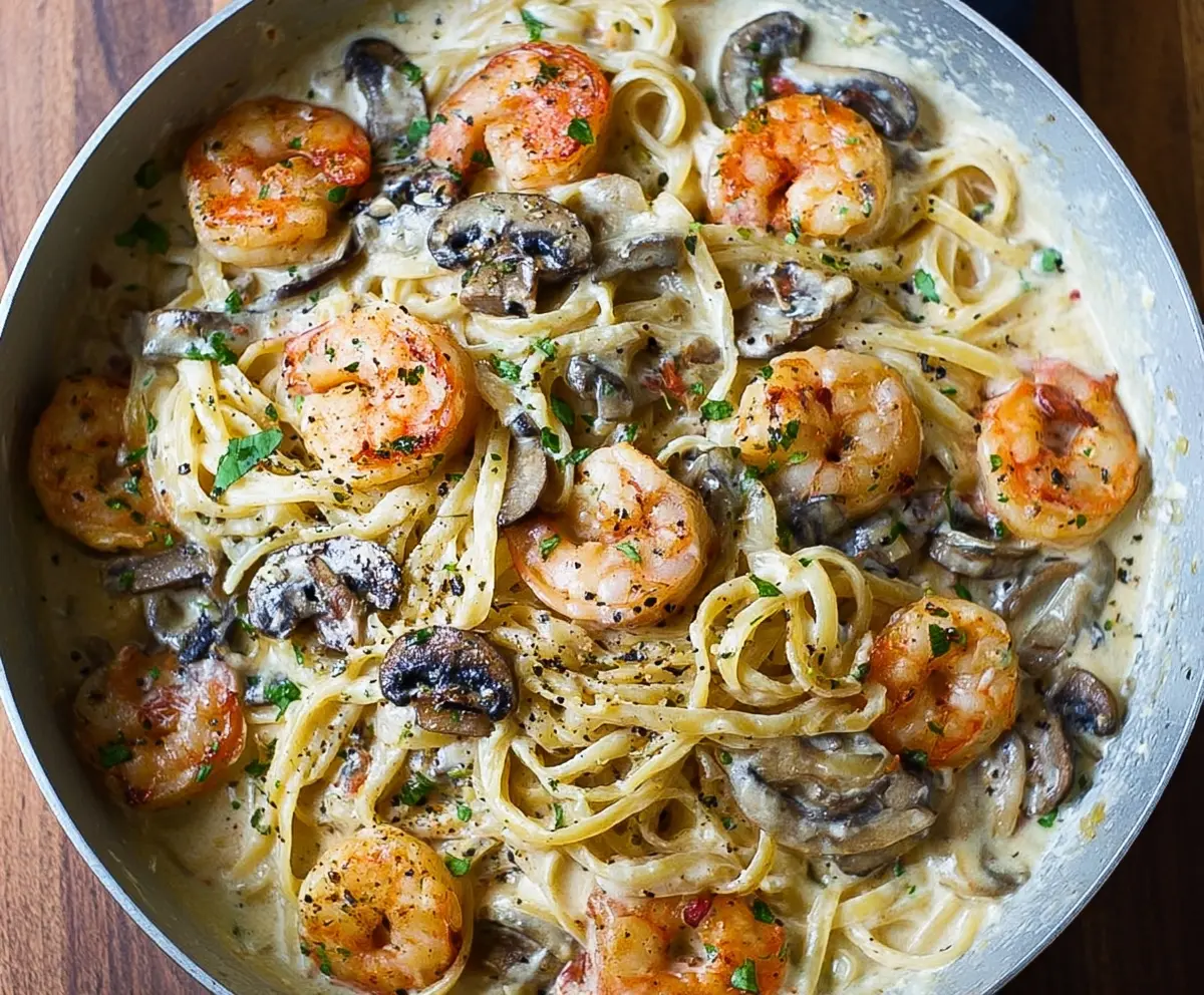 I love how quick this recipe is! Cook the pasta, whip up the sauce, and toss in the shrimp and mushrooms. Dinner’s ready before the kids ask what’s for dessert! 🍝😄
