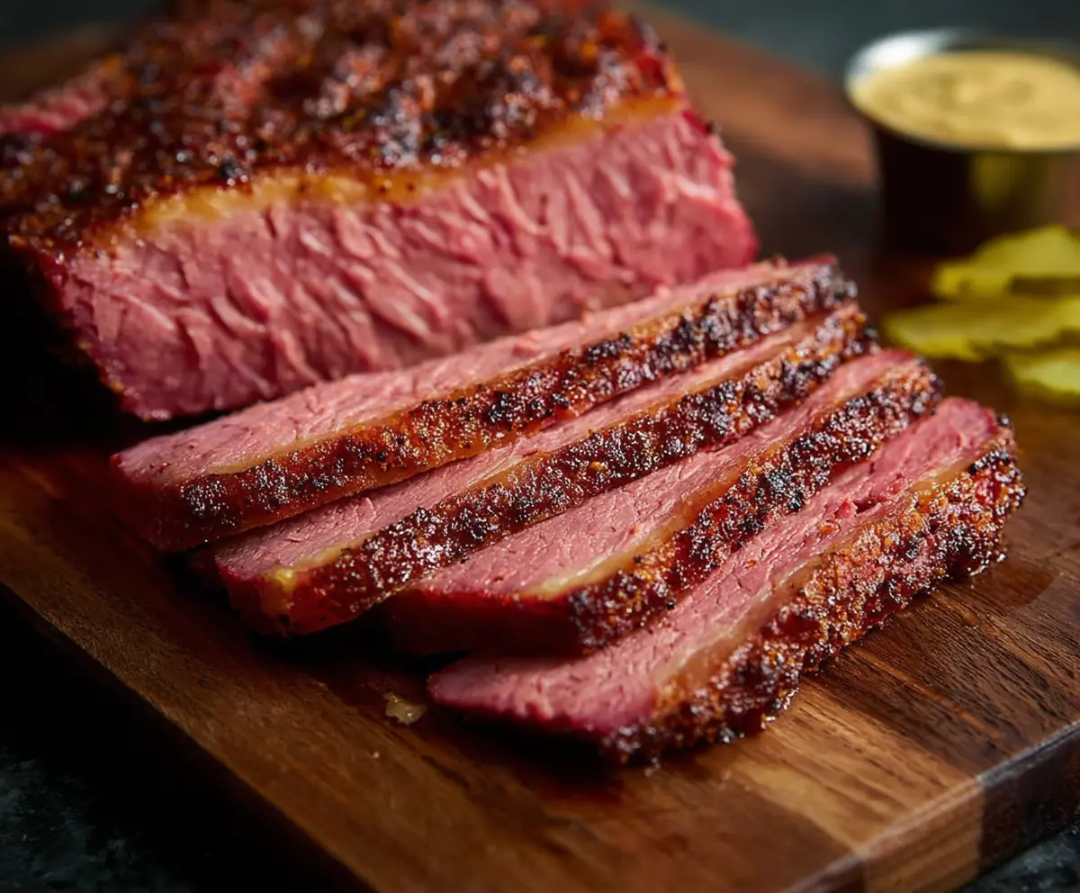 This smoked corned beef will give you a deliciously tender texture with a robust smoky, spicy crust, beautifully complemented by the classic briny flavor. Enjoy your meal!
