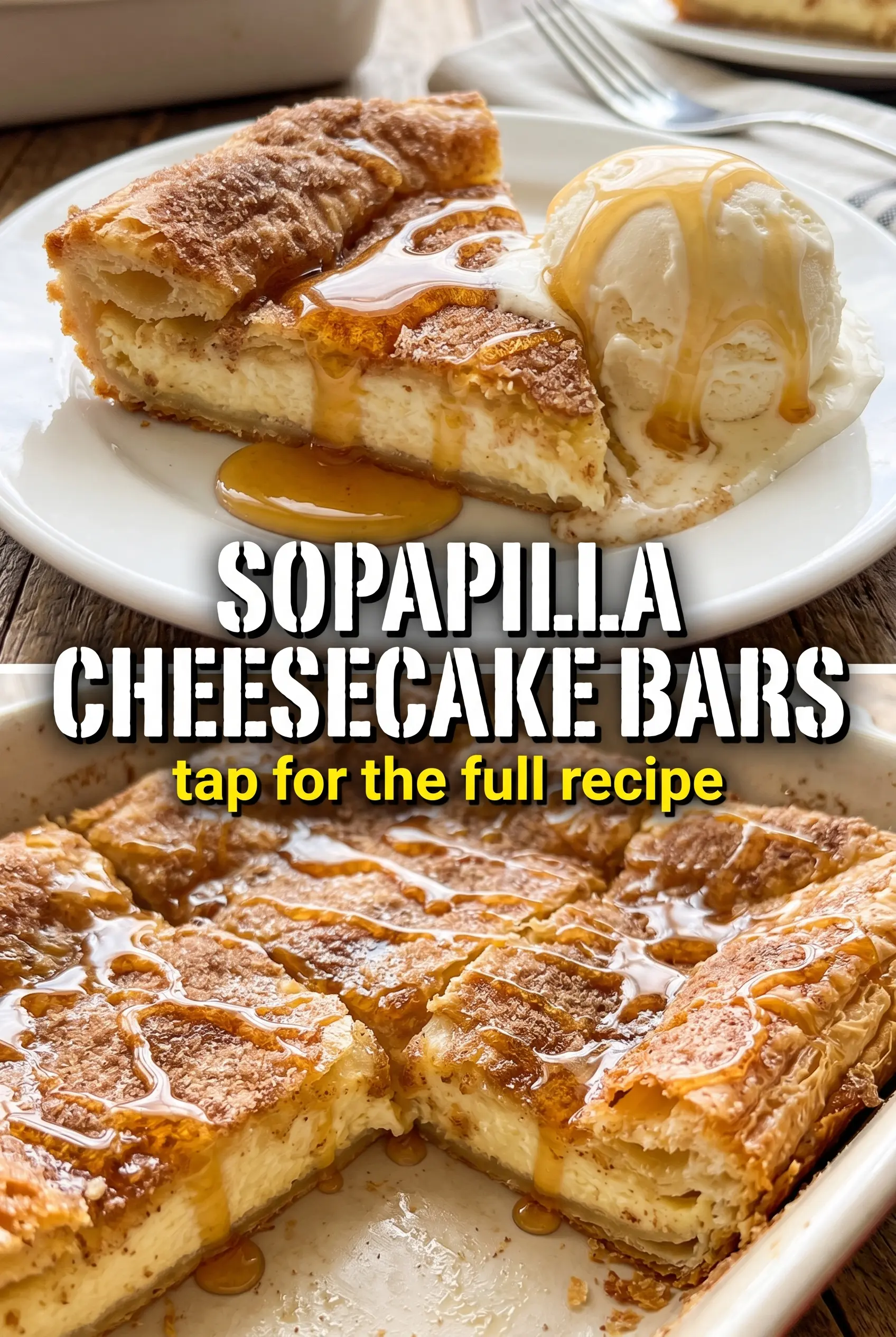 Creamy cheesecake filling, warm cinnamon sugar, and a golden crescent dough topping make these Sopapilla Cheesecake Bars the kind of dessert people keep cutting “just one more square” from. The edges bake up crisp and caramelized while the center stays soft and rich, and that contrast is exactly what makes the bars worth repeating. The caramel sauce on top pulls the whole pan together and gives each bite a sticky, bakery-style finish.