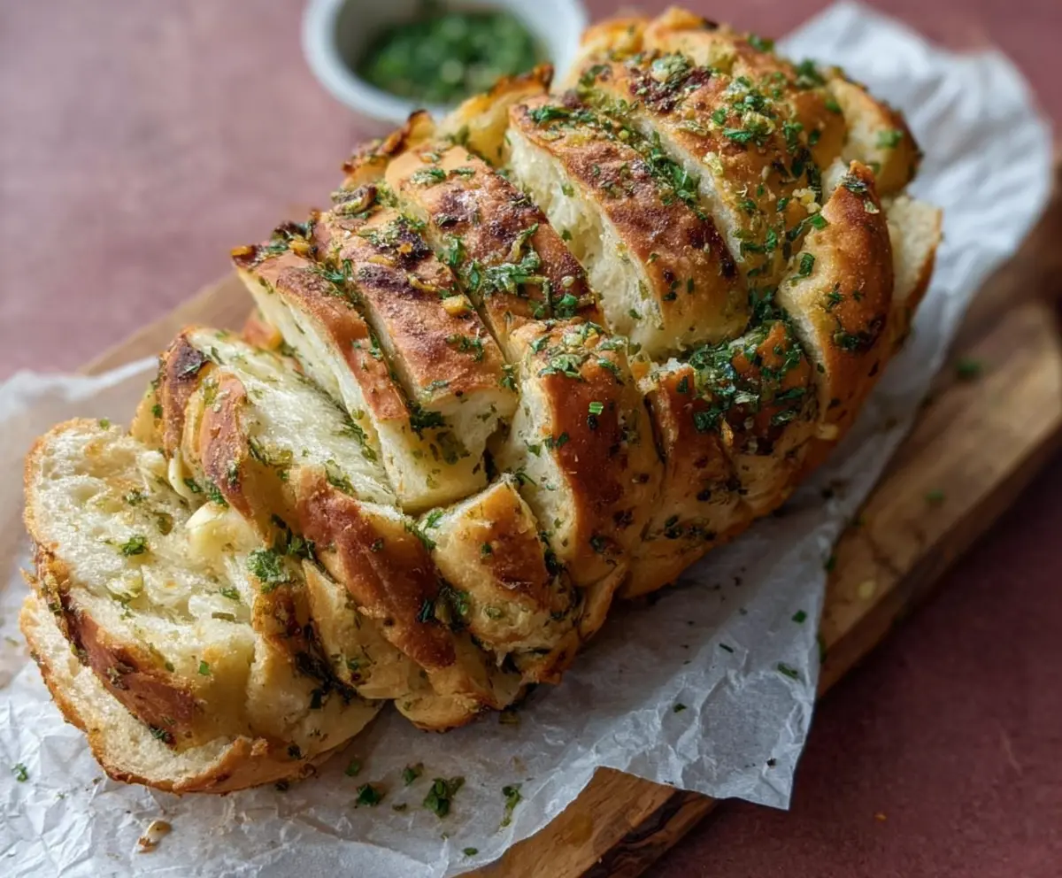 When done, remove the bread from the oven and brush any remaining garlic butter on top before garnishing with extra parsley. Allow it to cool slightly in the pan, then transfer it to a wire rack. Serve warm and enjoy pulling apart those gooey, garlicky layers!