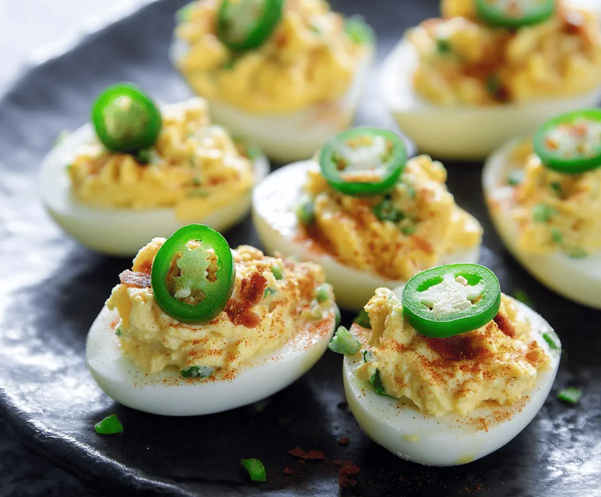 Enjoy the creamy, spicy goodness of your Spicy Jalapeño Popper Deviled Eggs! They’re sure to be a hit!