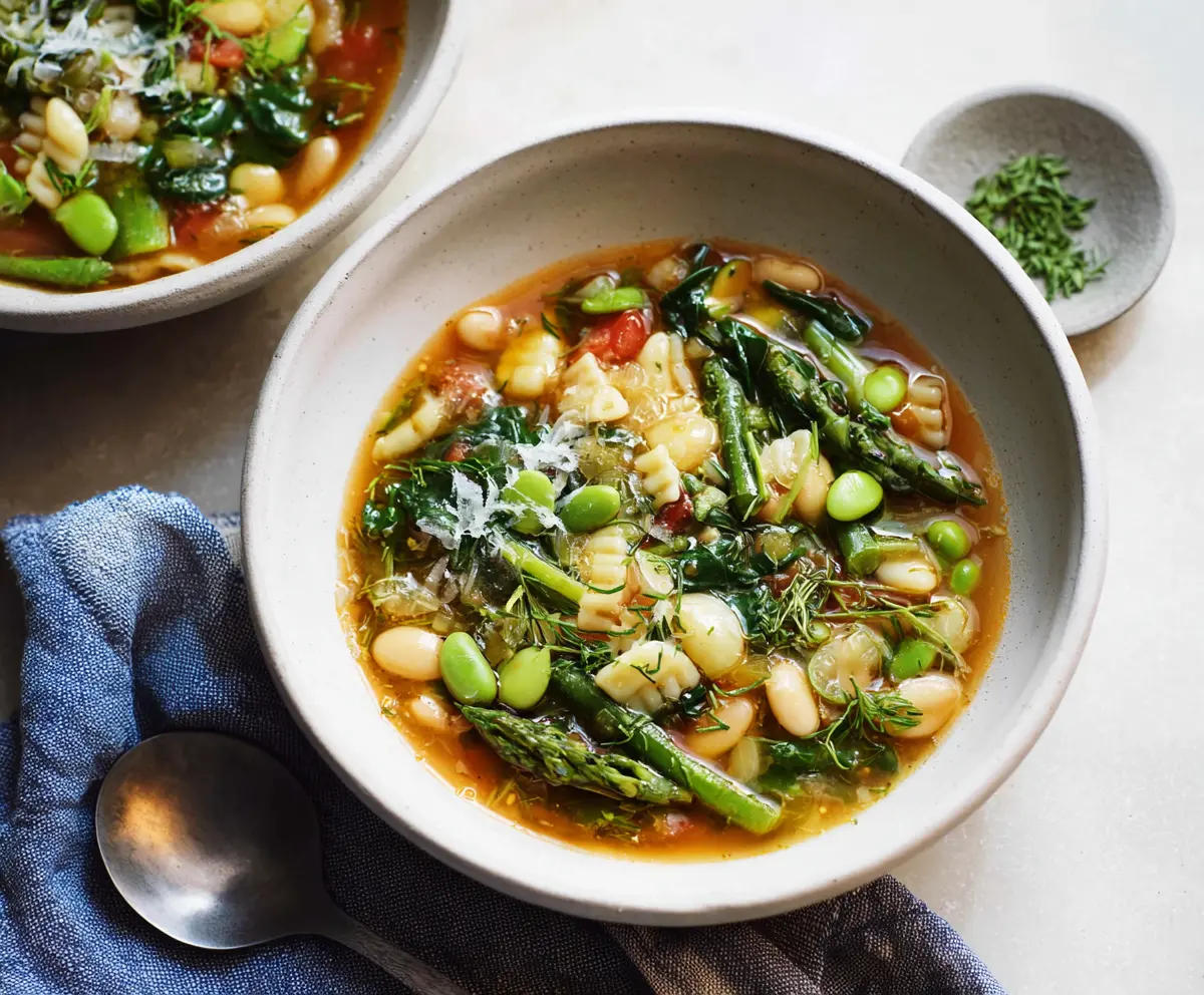 This Spring Minestrone Soup is a vibrant mix of fresh veggies like peas, zucchini, and spinach in a tasty broth. It’s warm, comforting, and perfect for a sunny day!