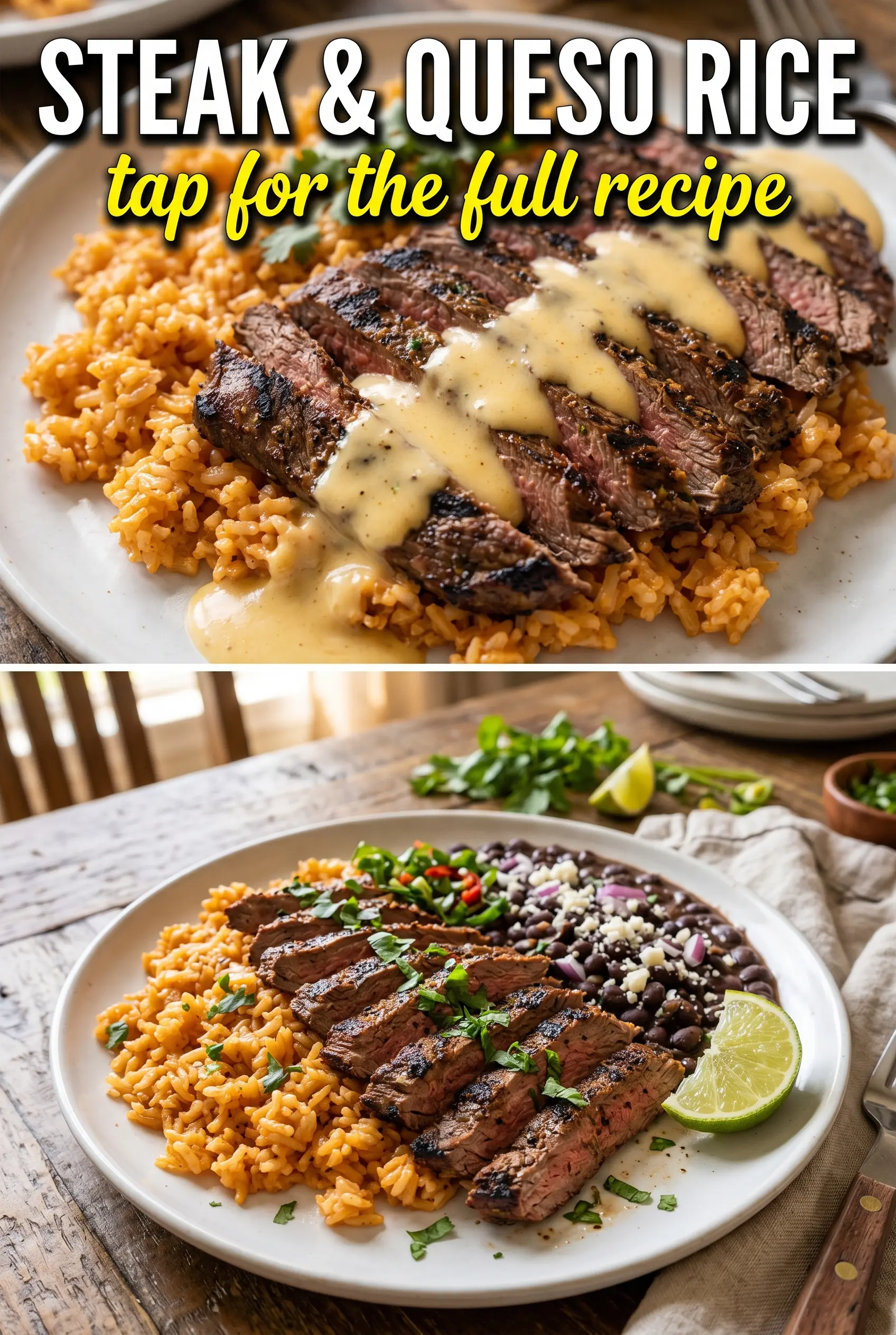 Save this steak and queso rice for the night you want a one-skillet dinner with a creamy finish and real seared flavor.