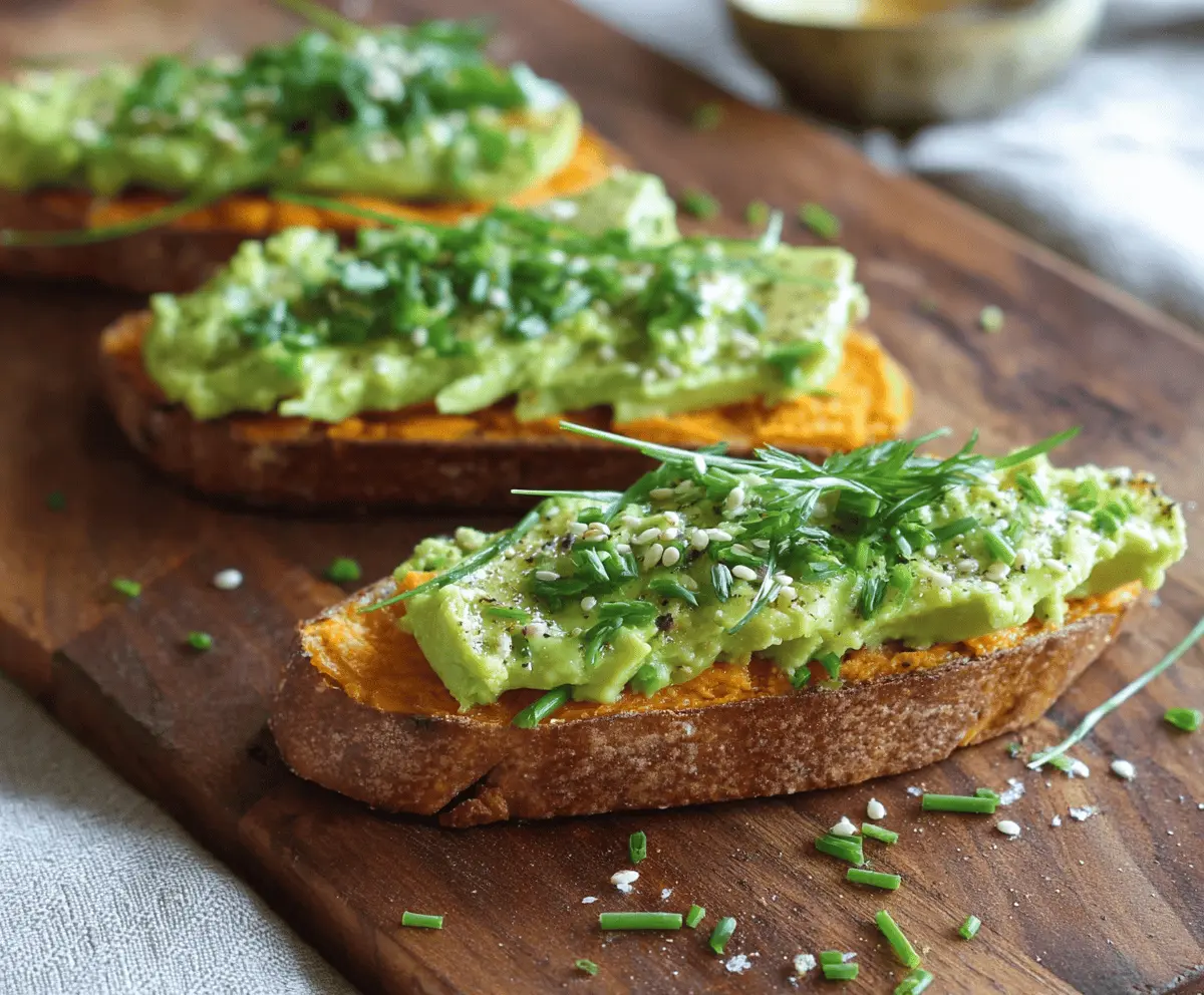 While the sweet potatoes are roasting, cut the ripe avocado in half and remove the pit. Scoop the green flesh into a bowl. Add lemon or lime juice, a pinch of salt, and black pepper to taste. Mash the avocado with a fork until it reaches a slightly chunky yet spreadable consistency.