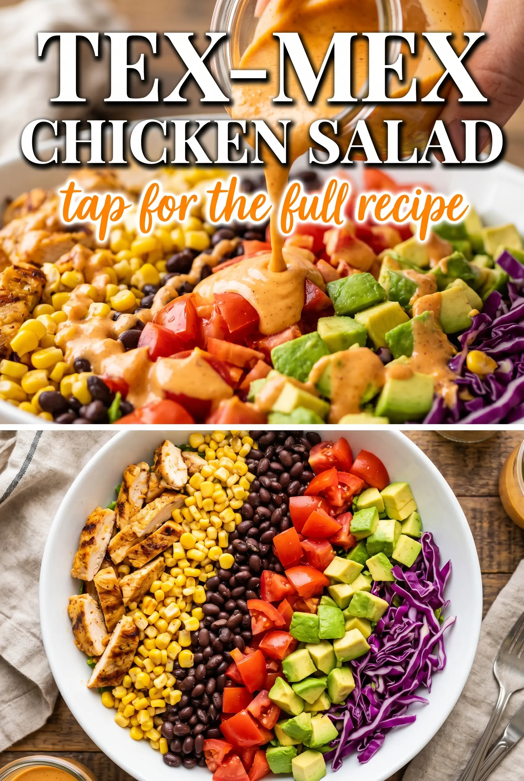Crunchy romaine, smoky charred corn, creamy avocado, and seasoned chicken all in one bowl is the kind of salad that doesn’t eat like a side dish. This Tex-Mex chopped chicken salad has enough texture and color to feel lively, but it still comes together fast enough for a weeknight. The chopped format matters here: every bite gets a little of everything, so you don’t end up with a bowl of plain lettuce at the bottom and all the good stuff on top.